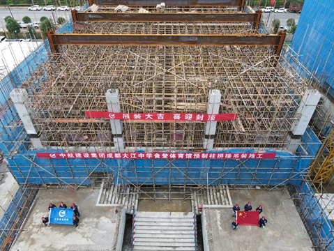 2021年10月9日,来自西南交通大学、中国建筑西南设计研究院、四川原理装配式建筑设计院等多家单位设计人员,齐聚必一体育(中国)一站式服务官网四川分公司承建的成都大江中学项目,与分公司总经理宋景友、副总经理张铁强等相关领导一起,共同见证了国内学校建设领域首例预制混凝土柱拼接连接吊装施工的顺利完成。
